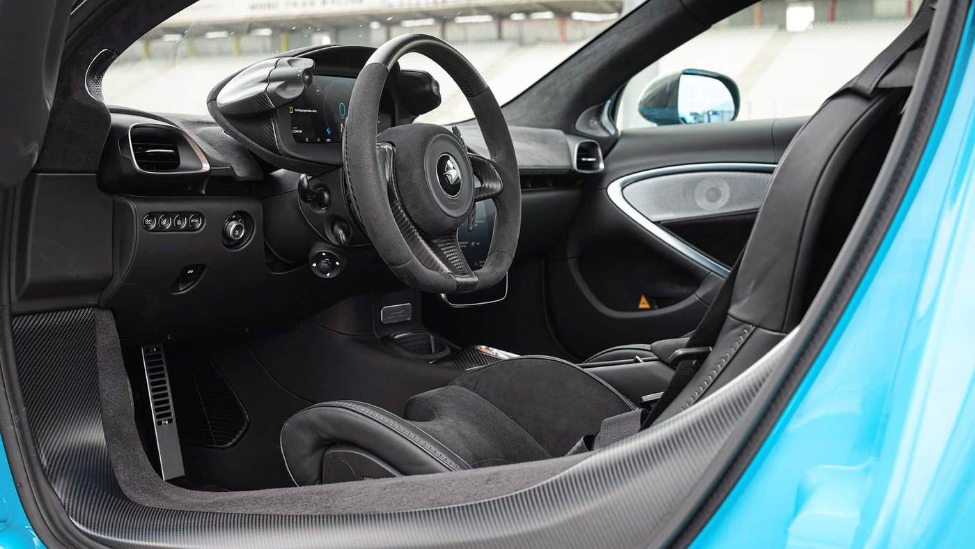 此前围绕720S一代的一些“怪癖”被彻底清除:从座椅调节逻辑、反应更快的前轴升降系统,到那两枚几乎像“蝶形螺母”一样的旋钮——分别控制底盘和动力模式。它们造型古怪,却异常顺手,并被安装在仪表外壳罩上。整个单元固定在转向柱上,会随着方向盘调节一起移动。