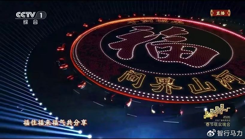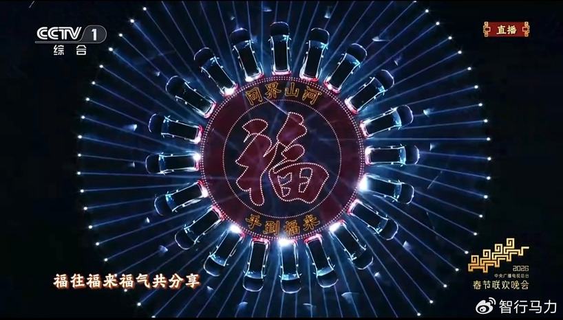 作为本届春晚的一大亮点,《手到福来》以“转福纳吉”的美好祈愿为立意,凭借极具互动性的“转福”手势引爆全民参与,为传统年俗注入全新活力。歌曲旋律流淌间,问界M9应和“转福”手势,以变幻的科技光影车阵勾勒出团圆轮廓,“问界山河”与“福”字点亮夜空,呈现出极具视觉张力的灯光大秀。这场突破边界的创意演绎,是对问界“智慧重塑豪华”理念的生动注解。问界M9于璀璨舞台传递福运,也在亿万观众心中定格了2026马年春晚温暖印记。