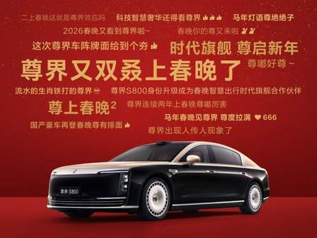 每年春晚是全民娱乐的焦点,而今年迎来了一位特殊的演员——尊界S800。其实在2025年春晚,尊界就已经完成了品牌亮相,而在2026年春晚中,尊界S800以"智慧出行时代旗舰合作伙伴"的身份出现在极具未来科技感的合肥分会场。作为从业者,自认为这并非简单的商业联动,其中带着一丝未来指引。
