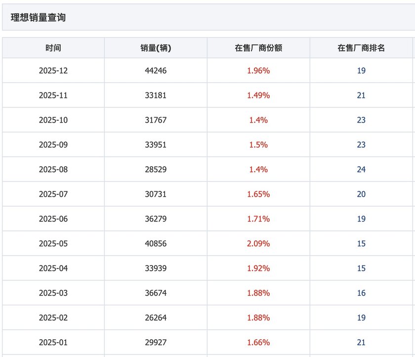 结合2025年其销量、市场占有率及利润表现,2026年理想汽车销量是否会持续下滑,利润又能否守住盈利底线、避免由盈转亏,成为市场聚焦的核心议题。