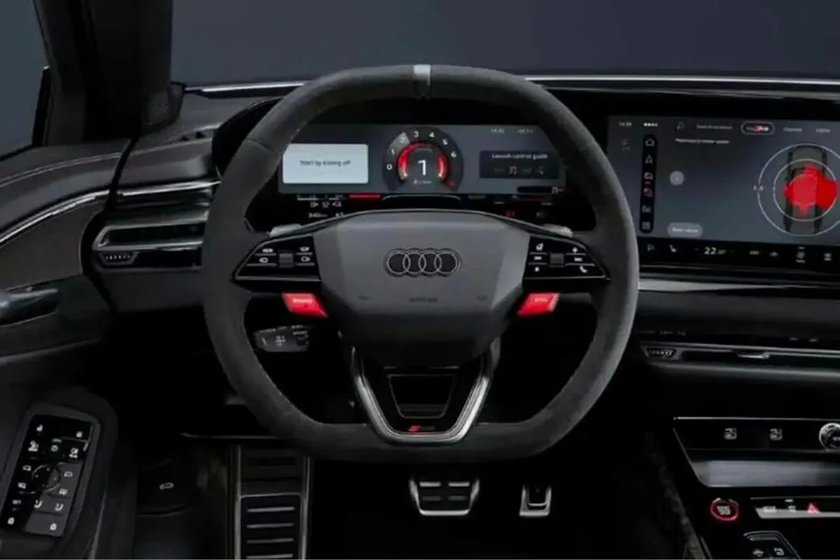 内饰延续奥迪RS家族的运动化基调,车内大面积使用Alcantara翻毛皮包覆,触感与运动氛围到位。方向盘为上下平底竞技造型,配有红色快捷功能按钮,大概率集成驾驶模式切换与启动功能。智能化配置方面,预计搭载11.9英寸全液晶仪表、14.5英寸中控屏与10.9英寸副驾屏的三联屏布局,依托PPC平台的E³ 1.2电子电气架构,车机响应速度、功能拓展性相比老款有明显提升,副驾屏还支持隐私模式,不干扰驾驶。