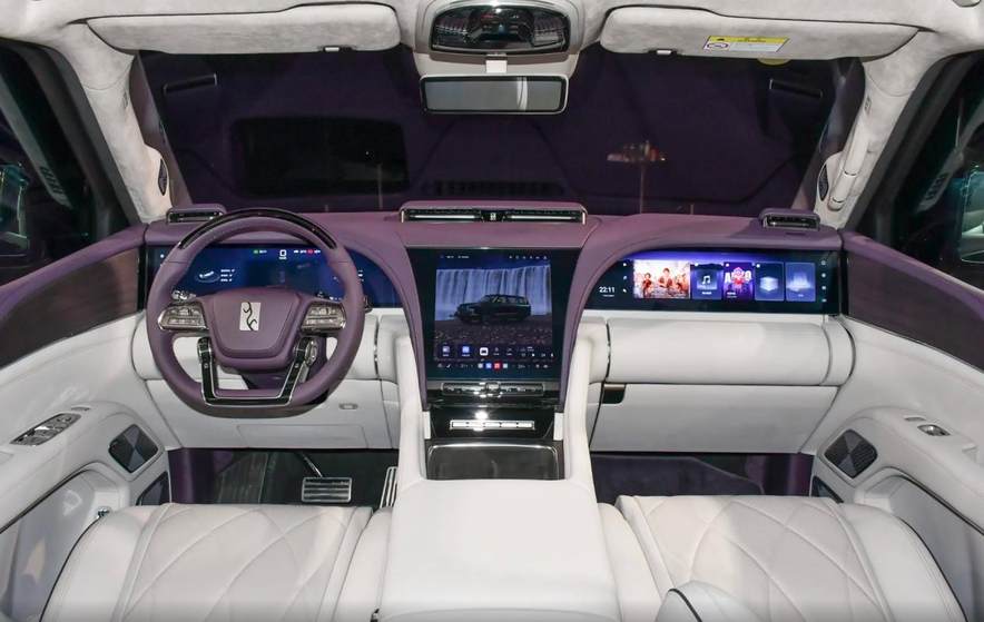 仰望U8L配备23.6英寸液晶仪表屏+12.8英寸中控屏+23.6英寸副驾娱乐屏,充满科技感。前排座椅纹理更加豪华,第二排配备独立零重力座椅,在座椅侧面以及扶手屏都配备了座椅调节按键。同时,车辆将仰望U8后排的两个座椅靠背后的娱乐屏换为中间的吸顶屏幕。细节方面,第二排左右两侧都配备有小桌板,并且车辆门板位置的造型有所变化,整体更加注重豪华感的营造。