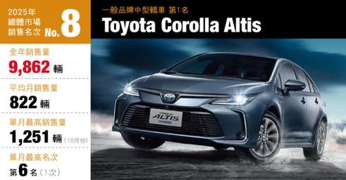 必须承认,轿车在台湾真的越来越惨了。神车卡罗拉在台湾叱咤多年,以前常年稳居前五,2025年跌到第八,多少有点让人意外。销量下滑的原因据说是因为那边的消费者开始痴迷SUV了,瓜分了轿车市场份额。不过卡罗拉全球销量王的朵儿就在这里,皮实耐用、省油省心,维修保养便宜,是家庭代步的首选轿车,老一辈车主对它的认可度颇高。