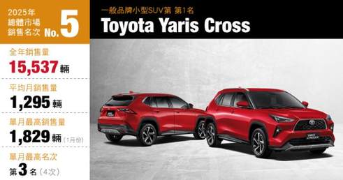 统治级选手雅力士Cross,去年销量数字虽然比24年少了点,但在整体市场衰退9.5%的情况下,这个成绩算是相当硬的了。接替原本Yaris掀背车的位置,可爱、省油、好开,女生一见钟情。价格压在70-80万台币,折合约十六七八万这样子吧,也是小家庭第一台车首选。车是没啥激情的了,但就是踏实。
