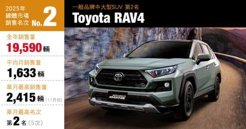 大佬毕竟是大佬,第五代RAV4都卖到产品末期了,还能以19590辆稳居总榜第二、进口车第一,全年只微跌3.3%,这抗压能力非常强了。第六代也快上市了,预估售价110-160万新台币,折合人民币约24-35万。由于是进口车,据说那边提RAV4还在上演着等三个月的盛况。