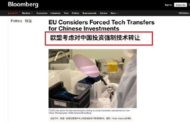 根据彭博社披露,欧盟正考虑出台新规,要求在欧投资的中国企业满足特定条件才能进入当地关键市场,包括强制转让技术等。