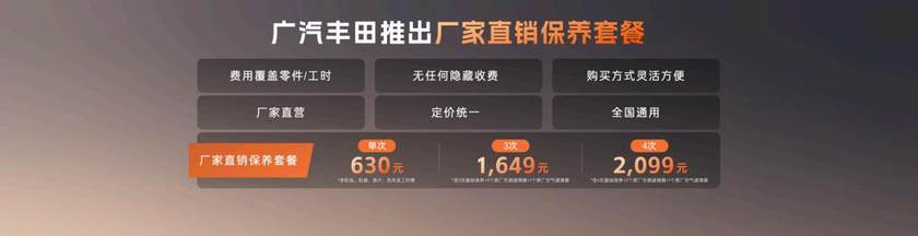 直面长期“养车难、养车贵”的用户痛点,广汽丰田推出了“厂家直销保养套餐”,将“服务从不套路”的承诺落到实处。用户仅需花费2099元,即可购买4次原厂保养,价格低至市场价的七五折,更可以按保养所需自由选择单次购买,且费用完全覆盖零件与工时,无任何隐藏收费。