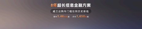 此外,官方推出厂家直销保养套餐,2099元可享4次原厂保养;同时还推出8年超长期低息金融方案,首付只需1.46万元,月供仅需1650元。