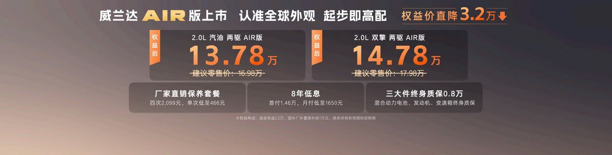 入门配置拉满,养车透明无套路,全新换代威兰达AIR版13.78万起