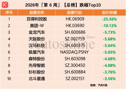 今年第6交易周,跌幅榜单上多由来自经销商和新能源、智能化/出行的个股占据。