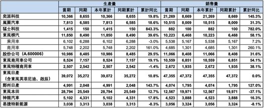 相比之下,东风汽车集团同比则保持两位数增长,已经追回至第六位。
