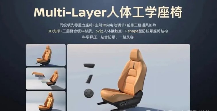 舒适方面,N7青春版搭载行业首创的AI零压云毯座椅,加上行业首创的全域智能防晕车系统,全家出行,舒适加倍。