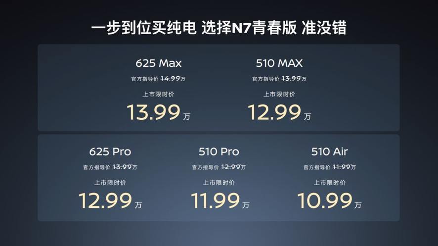 为了让更多家庭,轻松拥有这款越级品质的纯电轿车,N7青春版焕新而来。