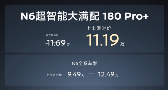 其中,十五代轩逸推出3款车型,上市限时价9.49—10.99万元;天籁·鸿蒙座舱S380大师版上市限时价16.19万元;N6 180 Pro+搭载宁德时代电池和Momenta高阶智驾,上市限时价11.19万元;N7全系焕新青春版,上市限时价10.99—13.99万元。