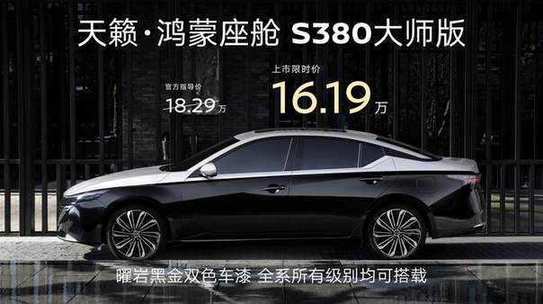 天籁・鸿蒙座舱 S380 大师版作为东风日产燃油车智能升级的核心力作,焕新带来两大升级体验与一大越级优势,此前天籁・鸿蒙座舱上市后便斩获连续 2 个月鸿蒙座舱轿车销冠,90 后用户占比达 50%。颜值上,新车采用曜岩黑金双拼色车身,搭配曜夜黑红内饰,打造百万级豪车同款美学质感;智能方面,搭载鸿蒙座舱 5,拥有 MoLA 大模型 AI 智慧语音助手、AI 智慧语音导航、3D 智控桌面三大同级唯一配置,3 月 5 日还将迎来首次 OTA,升级 MoLA 架构混合大模型,让人车交互更具温度。动力上,搭载全球十佳 2.0T VC-Turbo 超变擎发动机,最大马力 243 匹,峰值扭矩 371 牛・米,百公里加速 6 秒级,兼顾性能、可靠性与经济性,精准契合年轻用户需求。
