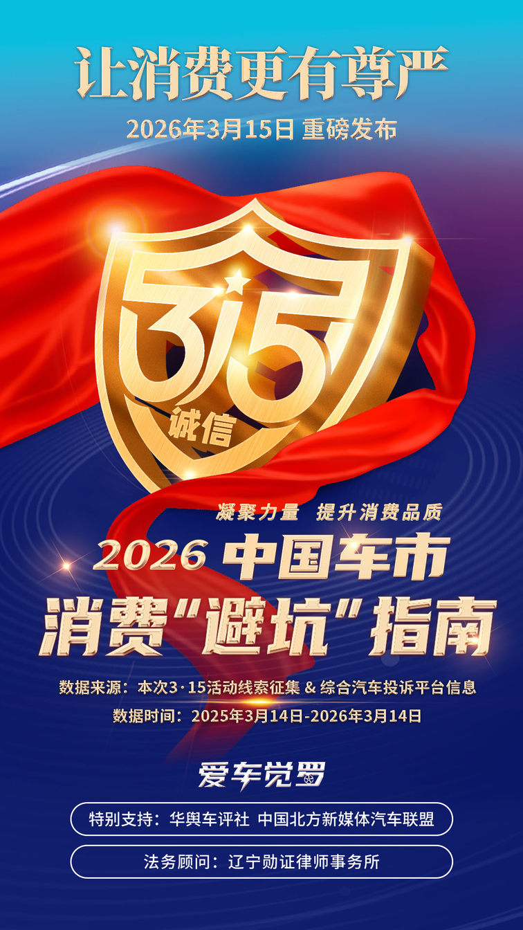 在3月15日,我们将正式发布这份凝聚了万千消费者真实声音的 《2026中国车市消费“避坑”指南》。我们希望这份指南能成为一面镜子,照出行业的瑕疵;更希望它成为一盏灯,照亮您未来出行的坦途,为广大消费者的购车提供参考。