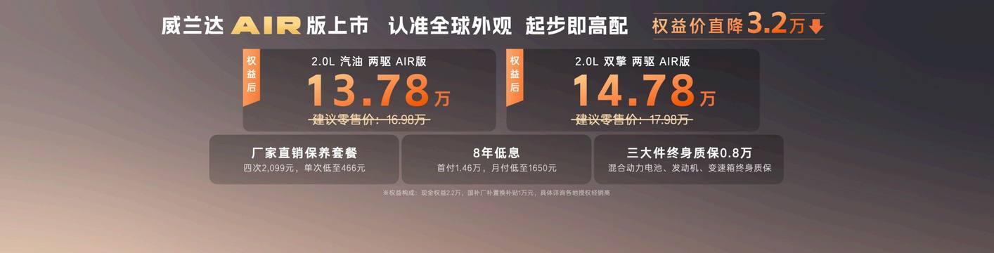 全新换代威兰达AIR版13.78万元起,打造全周期用车新价值