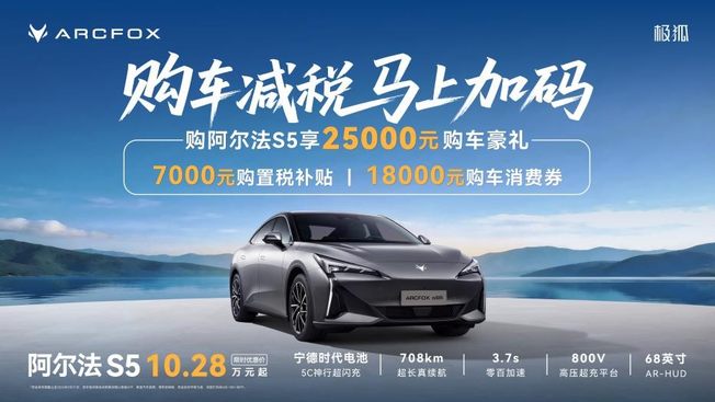 从技术平权普及智驾,到健康座舱守护家庭,再到此次力度空前的至高25000元兜底补贴,极狐汽车销量不断攀升的同时,做到了始终和用户需求同频共振。马年开年,正是焕新的好时机。如果你正在为选车发愁,为购置税焦虑,不妨看看极狐。趁着这波限时福利赶紧上车。