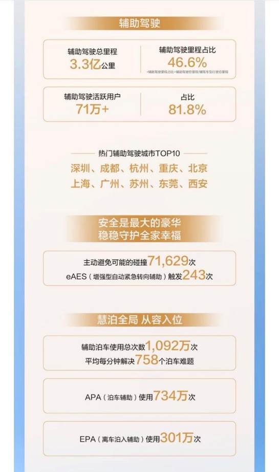 秉承“安全是最大的豪华”理念,问界持续为用户带来更智慧、更安全的出行体验。报告显示,问界在春节期间避免可能的碰撞71,629次,eAES(增强型自动紧急转向辅助)触发243次,用科技守护用户安全,让团圆之路安行无虞。