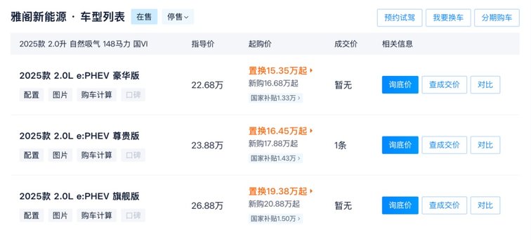 实际上,插混雅阁过去一年在终端市场本就存在不小的幅度优惠,不同区域行情差异较大,普遍都有数万元的让利空间。