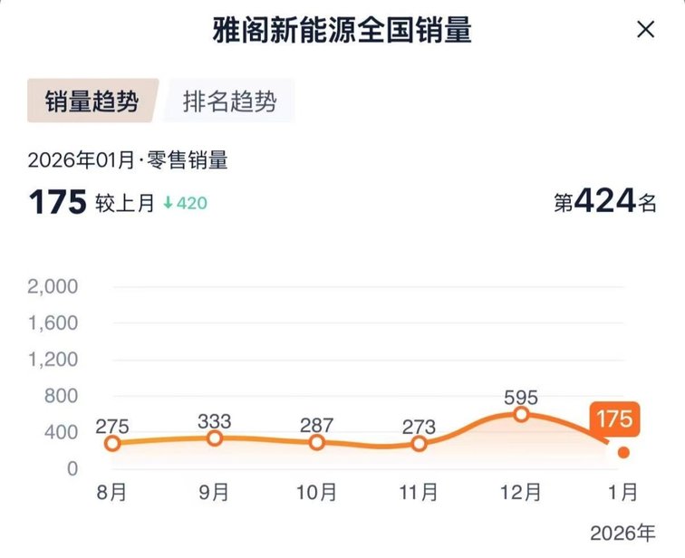 数据显示,从去年11月到今年1月,插混雅阁销量分别为273辆、595辆、175辆,市场表现持续低迷,而燃油雅阁一直承担走量重任。