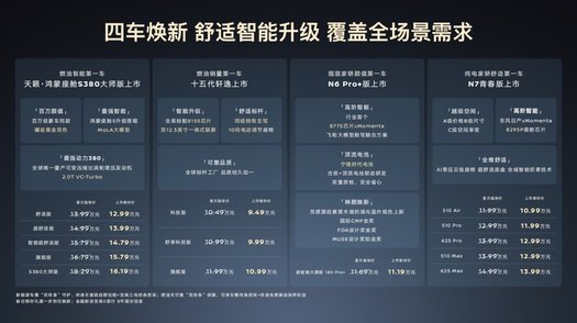 其中,第十五代轩逸共推出3款车型,上市限时价为9.49万至10.99万元;天籁·鸿蒙座舱S380大师版上市限时价为16.19万元;N6 180 Pro+版搭载宁德时代电池与Momenta高阶智驾系统,上市限时价为11.19万元;N7全系新增青春版车型,上市限时价为10.99万至13.99万元。