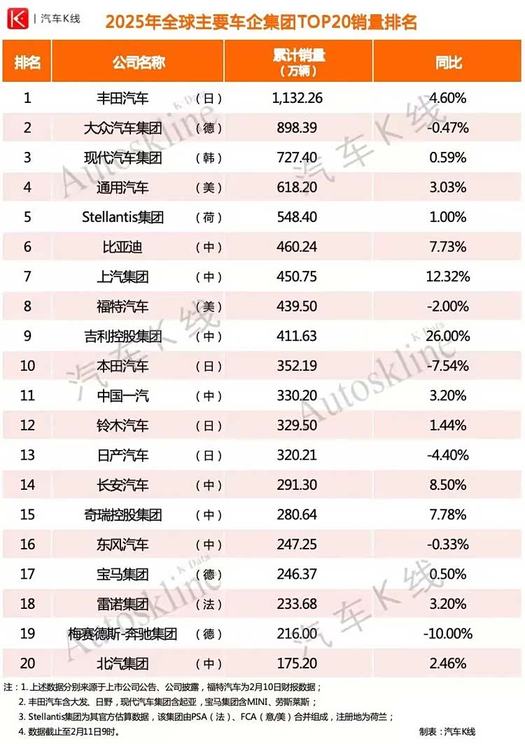 经过官方和权威信息渠道交叉确认,《汽车K线》统计的这份全球汽车上市公司销量TOP20排行榜,终于尘埃落定。