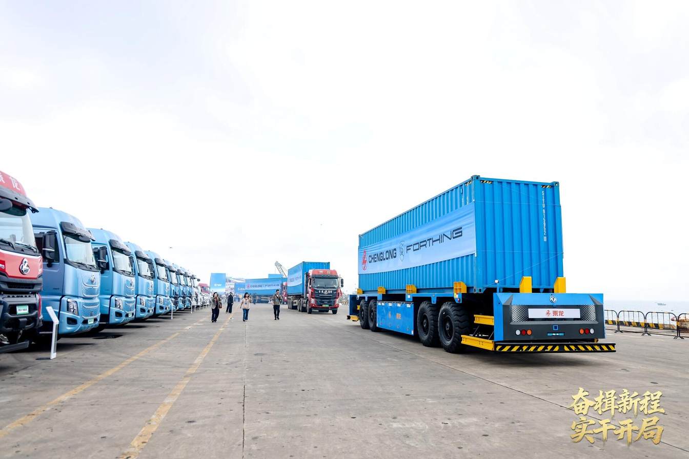 在系列签约与新品发布后,活动迎来了备受关注的智能作业展示环节。在开工指令发布之后,智能卡车随即启动装载集装箱,与自动化港口装备协同完成吊装上船作业,车与船鸣笛呼应,直观展现了“汽车智造+港口物流”融合的新质生产力。活动当天下午,船舶搭载着一批T5 EVO KD散件集装箱缓缓从钦州港离泊驶向柬埔寨。同时,在3月5日也将有47辆东风柳汽乘用车(星海S7、星海V9、M4),从北部湾港出发,直达阿联酋杰贝阿里港。