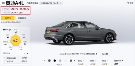 豪华阵营率先炸锅,BBA带头内卷。奥迪A4L最狠,入门版终端优惠9到10万,裸车价直接跌破20万,放在几年前,这个价格连A级车都得挑着买。宝马iX等豪华电动车旧款降幅超30万,相当于打七折;路虎揽胜极光更离谱,直接降价49%,优惠高达21万,半折甩卖直接搅乱终端市场。