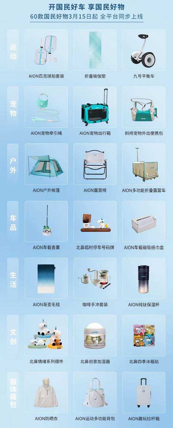 “国民好物”以“好而不贵、安全可靠”为品质基因,融合便捷、智能的使用体验,致力于无缝融入用户出行生活中的车生活好物。并且“国民好物”中,不仅有严选精品、联名款,更有埃安与用户共创的产品,充分体现埃安与用户的情感联结。