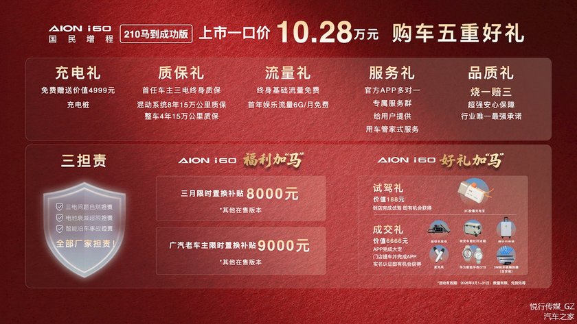 为了让更多家庭轻松拥有这份小确幸,埃安还推出了限时置换福利:3月入手i60其他在售版本可享8000元置换补贴,广汽老车主更是可以专享9000元补贴,焕新升级触手可得。现在到店试驾并下定,还有更多惊喜:即日起至3月31日,到店试驾即有机会获得价值188元的国民好物,完成新车下定更可赢取价值6666元的专属礼包。