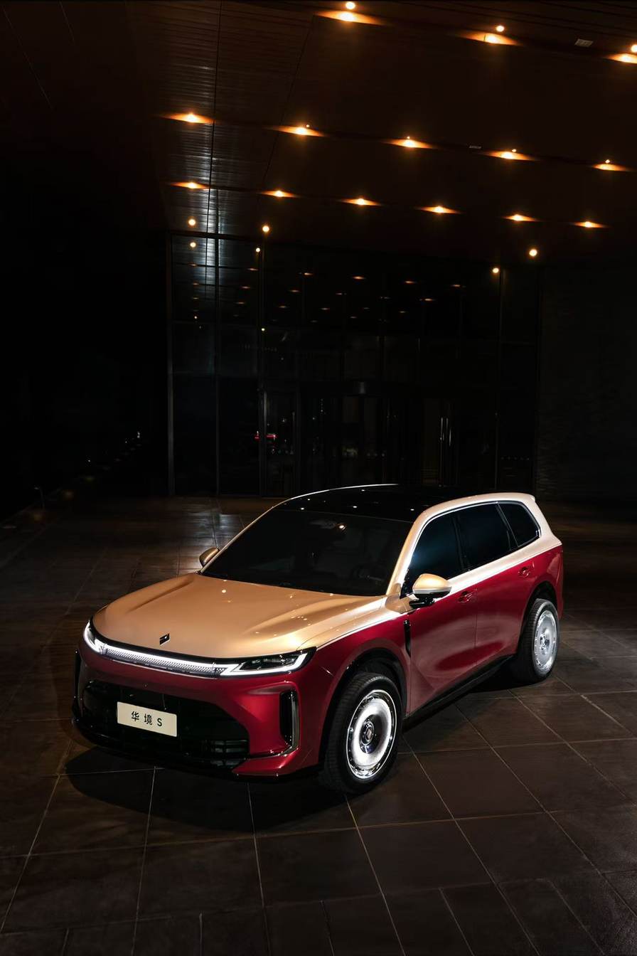 从官方实拍图来看,华境S的设计颠覆了传统家用车的保守风格。红米双色车身大胆采用撞色设计,红色热烈与米色优雅形成强烈反差,配合流畅的轿跑式车身线条,营造出“移动艺术装置”的既视感。而最吸睛的当属其19英寸“大饼轮圈”——金属质感辐条与低扁平比轮胎的组合,既保留了复古豪华车的经典元素,又通过现代工艺赋予科技未来感。这种设计在20万元级车型中极为罕见,甚至被网友戏称“百万豪车下放”。