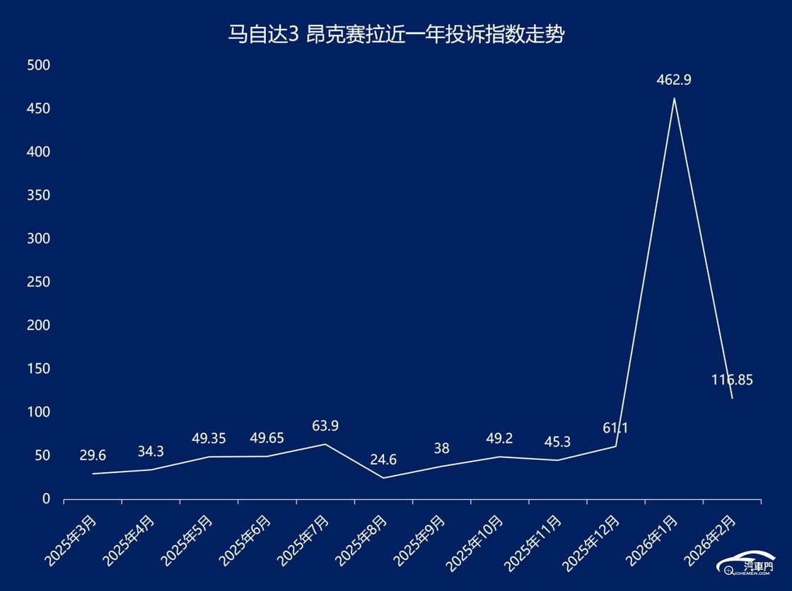 第一名:马自达3 昂克赛拉 投诉指数 116.85