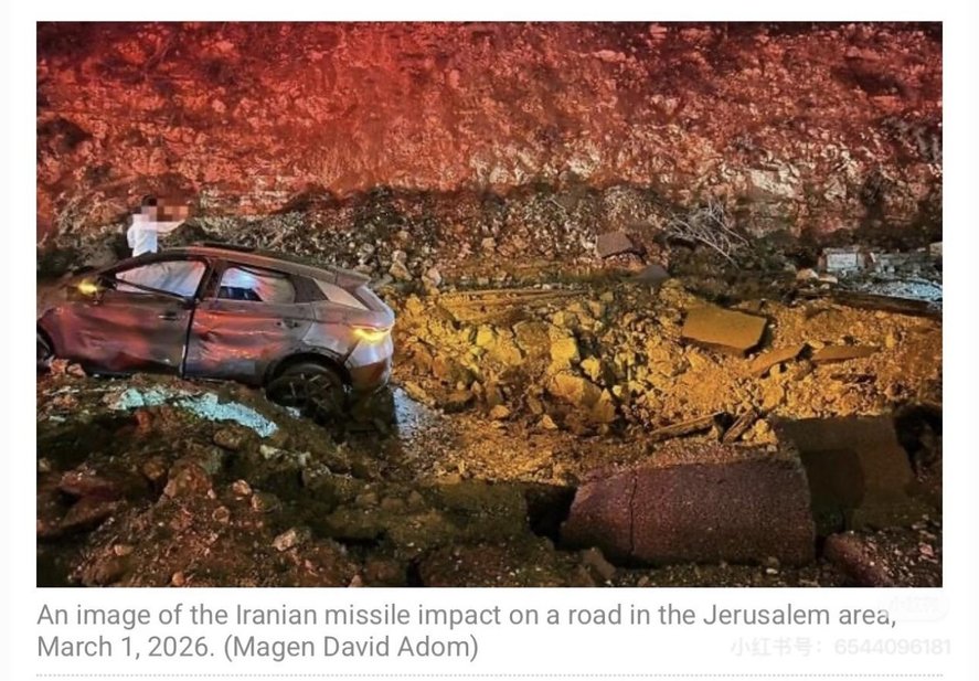 3月1日,一枚伊朗导弹在耶路撒冷周边爆炸。报道称,导弹爆炸后在路面留下明显弹坑,周边多辆汽车受损严重,交通标志牌被直接炸飞,可见爆炸威力之大。图中可见一辆比亚迪元PLUS(海外名称ATTO 3)贴身接了一发导弹,不幸被爆炸波及。受波及的比亚迪元PLUS,虽难逃外部损伤,其车窗碎裂、车体变形、外观受损,但核心表现让人意外,充分体现了比亚迪汽车在安全设计和制造上的可靠性。
