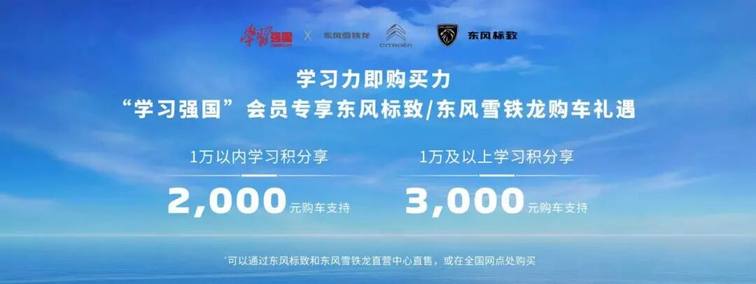 为此,东风雪铁龙、东风标致积极响应,正式启动“学习积分激励购车”活动,即日起,用户可根据学习积分情况,享受相应的购车优惠。并计划在3月20日基于“学习强国”学习积分生态的“积分优惠换券测算”智能购车系统将正式上线,届时,“学习强国”学习平台会员可享东风雪铁龙、东风标致专属购车礼遇,实现学习积分向购车优惠的直接转化,探索“学习赋能消费、服务直达民生”的创新模式。此次活动不仅丰富了“学习强国”学习平台的服务生态,更以数字化手段精准促进汽车消费,让惠民政策触手可及,推动每一次学习积累都能转化为美好出行的切实回馈。