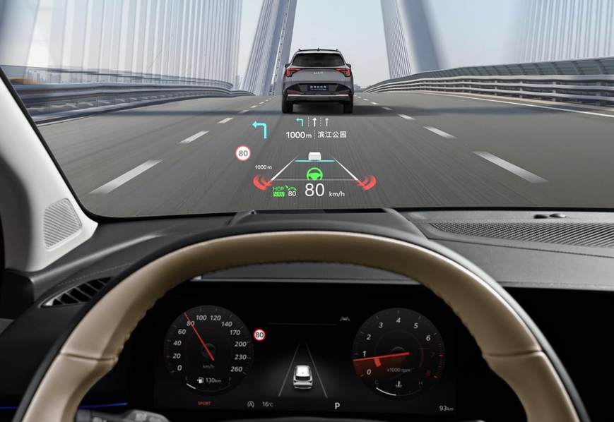 值得一提的是,起亚新狮铂拓界首次搭载11英寸HUD抬头显示系统,能有效减少驾驶视线转移,其最高亮度可达12,000尼特,即便在正午强光下依然可以清晰显示车速、道路标识和导航系统等关键驾驶信息,配合SVM全景显示与BVM侧后方影像,进一步扩大安全边界。新车还搭载起亚全新研发的智能IFS投射式大灯,照射范围更广、亮度更强,让用户夜间行车更安心。