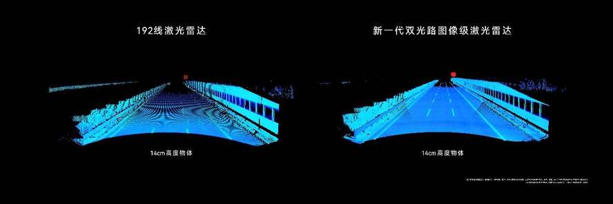 分辨率直接提升4倍,从以前模糊的点云扫描,变成了清晰的图像级呈现,55米外小狗摇尾巴的细节都能捕捉到,这种细腻度,在日常驾驶里太实用了。更关键的是它的识别能力,120米外就能稳定识别14厘米高的小障碍,比如高速上散落的碎石、横倒的锥桶,这些最容易被忽略的“隐形风险”,现在都能被提前揪出来,给足车主反应时间。