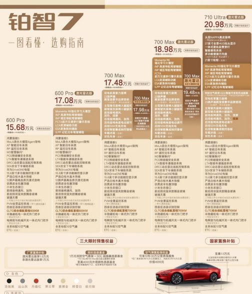 这份终极确定性,首先体现在极具诚意的价格与三大限时权益上。铂智7此次推出五大版本,以阶梯式配置组合覆盖不同用户的多元需求,每一款都在同价位段树立了全新的价值标杆。