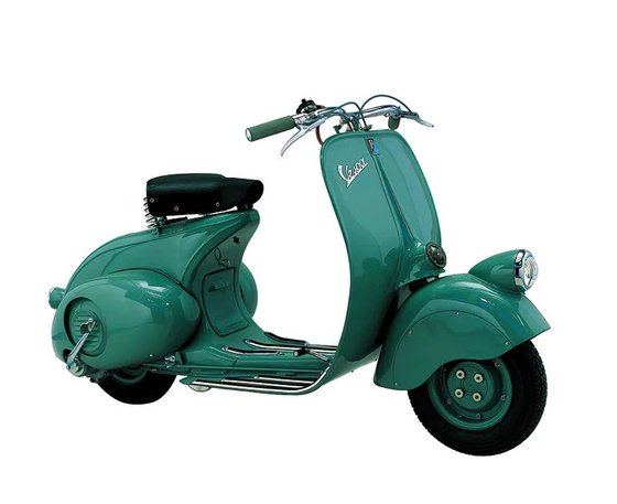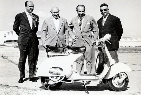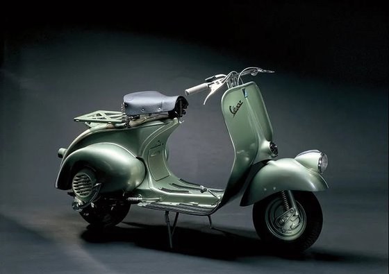 工程师 Corradino D’Ascanio设计出第一款Vespa踏板摩托车,由于外型和发出的声音很像马蜂,所以Piaggio决定叫它"Wasp"(马蜂),英文表达为Vespa。1946年4月,Vespa 98在一家罗马高尔夫俱乐部首度上市。前斜板上秀出崭新的Piaggio厂徽,取代先前的Piaggio航空事业商标, Vespa 98配备98毫升发动机,最高时速达60公里/小时,该车型上市第一年就售出了2484台。全世界最知名的踏板车,就此展开它的历史篇章。