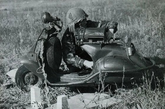1950年代,法国国防部委托Piaggio的法国授权商A.C.M.A.生产军用车辆。Piaggio设计了这款十分独特的Vespa 150 T.A.P.,该车带有一门75毫米口径火炮和6枚炮弹,可以被空投到任何需要的地方,然后以60公里/小时的速度跑上200公里不用加油,该车款在1956至1959年间生产了约600台。
