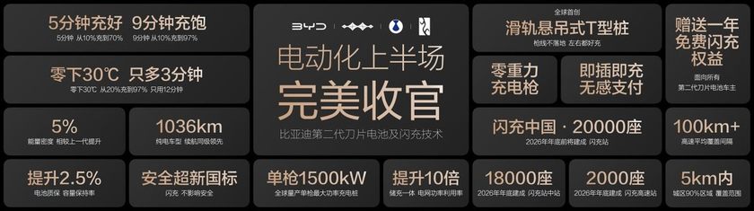 第二代刀片电池及闪充技术的发布,与“闪充中国”战略的落地,标志着 “充电慢”、“低温充电难”这两大世界性难题已被攻克,新能源汽车电动化的“上半场”至此完美收官。