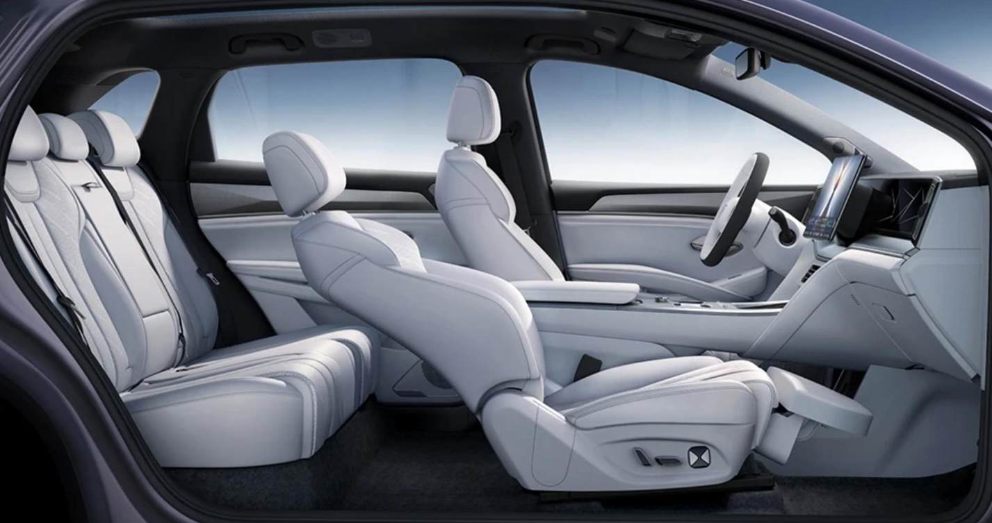 作为家用SUV,宋Ultra EV车身尺寸4850×1910×1670mm,轴距2840mm,五座布局+后排纯平地台设计,后排满载三人也不拥挤。