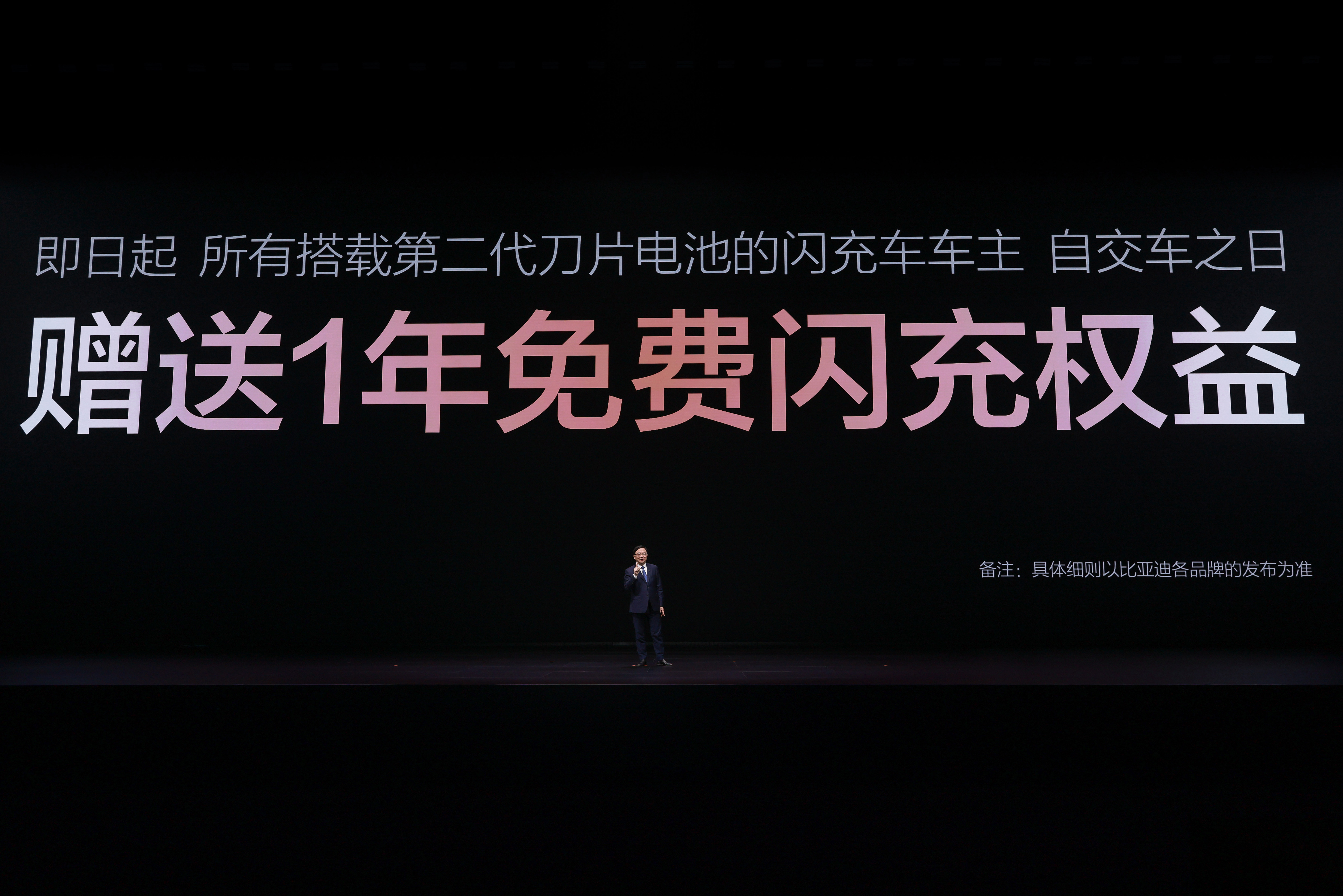 发布会现场,王传福还宣布:所有搭载第二代刀片电池的闪充车车主,均享有重磅“闪充权益”,自交车之日起,在全国闪充站可享受1年的免费闪充权益,让闪充体验更畅快。并且,在闪充免费期结束后,也会同行业保持一致,不会额外收费。仰望、腾势和方程豹新车型搭载第二代刀片电池及闪充技术。