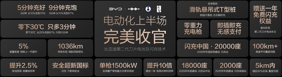 第二代刀片电池及闪充技术的发布,与“闪充中国”战略的落地,标志着 “充电慢”、“低温充电难”这两大世界性难题已被攻克,新能源汽车电动化的“上半场”至此完美收官。