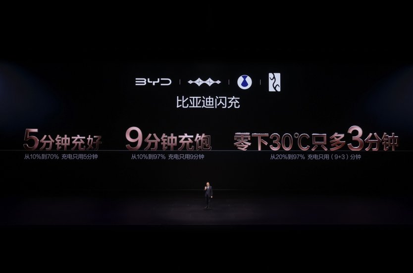 在2026年3月5日,比亚迪在深圳大运中心体育馆召开“闪充中国 改变世界”发布会。正式发布:第二代刀片电池及闪充技术,创造全球量产最快充电速度新纪录,从10%到70%,只用5分钟就能充好;从10%到97%,只用9分钟就能充饱;零下30度,从20%到97%,只比常温多3分钟。一举攻克了电动化上半场“充电慢”和“低温充电难”的世界性难题,电动化上半场至此完美收官。同时,发布“闪充中国”战略,年底将在全国建设20000座闪充站,让用户充电更自由、更便捷,硬核闪充技术树立行业新标杆,从此新能源汽车充电迈入闪充时代。