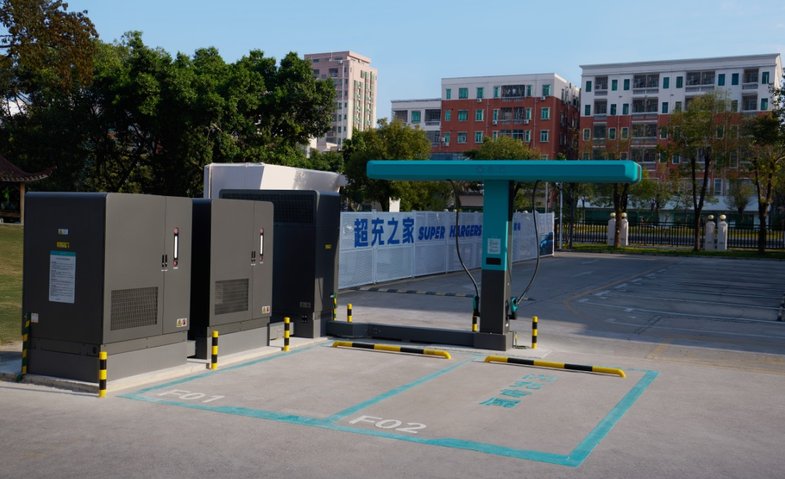 为实现第二代刀片电池的闪充速度,比亚迪还全新开发了闪充桩,单枪充电功率做到了:1500kW!是全球量产单枪最大功率充电桩!配合超级快放的储能系统,突破了电网容量限制,而且绝不会伤害电网,是对社会最友好的充电解决方案。