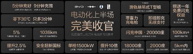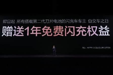 发布会现场,王传福还宣布:所有搭载第二代刀片电池的闪充车车主,均享有重磅“闪充权益”,自交车之日起,在全国闪充站可享受1年的免费闪充权益,让闪充体验更畅快。并且,在闪充免费期结束后,也会同行业保持一致,不会额外收费。