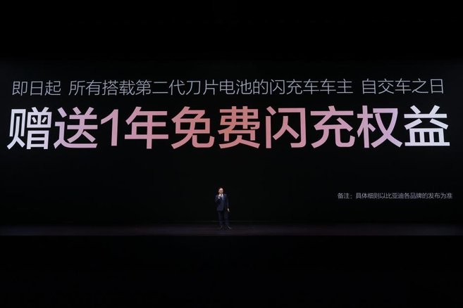 发布会宣布,所有搭载第二代刀片电池的闪充车车主,自交车之日起在全国闪充站可享受1年免费闪充权益。在免费期结束后,充电费用也将与行业保持一致,不会额外收取任何费用。