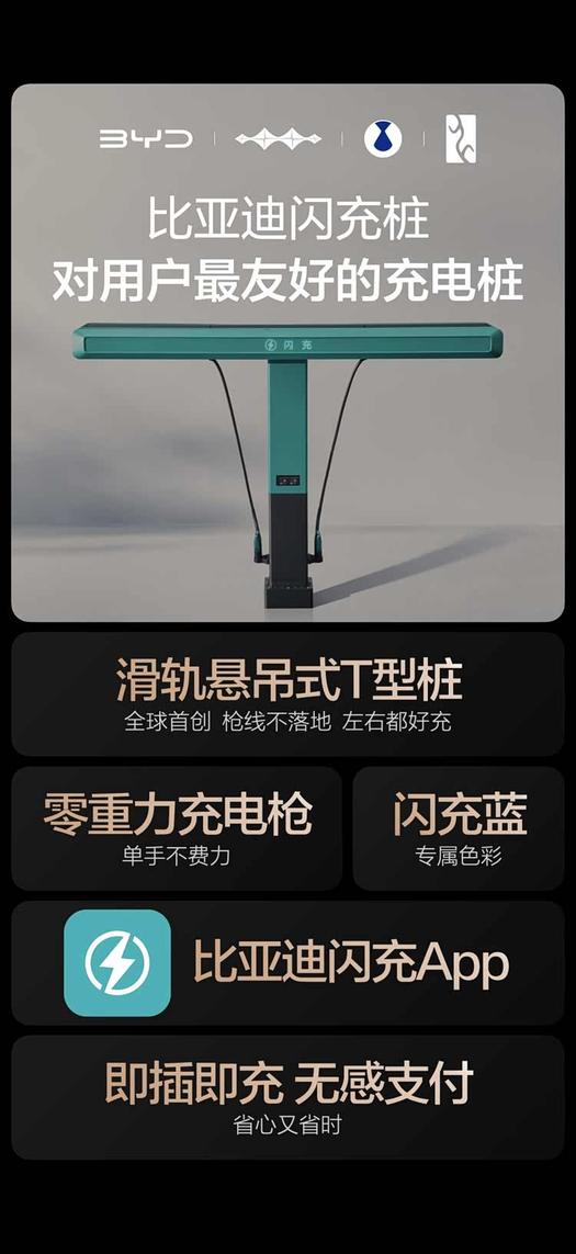 什么?还有?你说那充电线一定很重吧?你还跟我算什么这么大的功率,需要多少电流,多少电流需要多粗的电线?你没看过视频吧?那充电线细的比你大拇指没粗多少,而且之前咱们在充电桩充电,还要拖着重重的充电桩和线,拉到充电口充电,确实很不优雅,如果充电线不够长,可能还要挪车。现在比亚迪闪充桩采用了全球首创的“滑轨悬吊式T型桩”设计,让线拉着枪,充电枪取放轻如“零重力充电枪”,线缆不拖地,不管你的车充电口在左边还是右边,滑轨设计都很方便,还有“即插即充,无感支付”功能,插枪就充,拔枪就走,体验更好了。