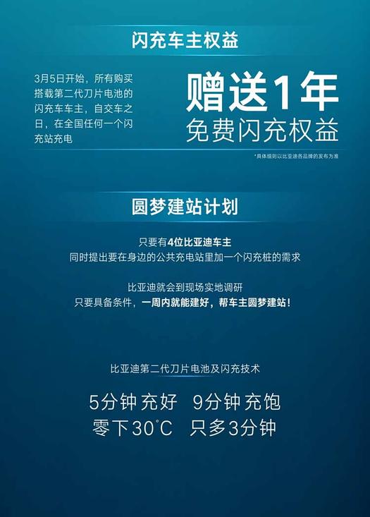 此外,所有搭载第二代刀片电池的闪充车车主,可享自交车之日起1年免费闪充权益,后续收费与行业持平。比亚迪还将推出“圆梦建站”计划,根据用户需求规划建站,并向全社会开放共享闪充站。所以,比亚迪闪充技术真的有可能改写当下市场的格局,让更多用户会考虑选择新能源车,因为更快的补能效率确实能够解决用户的里程焦虑。